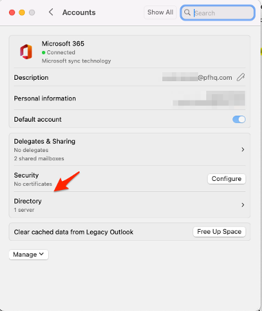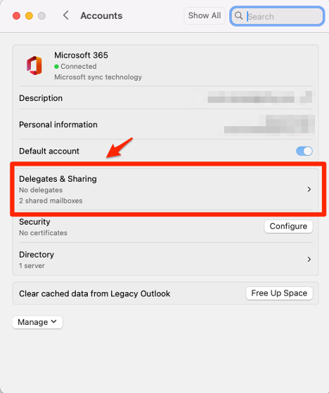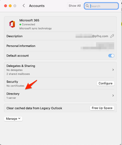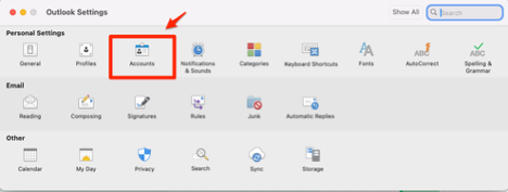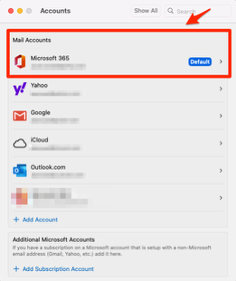 a. In the Accounts, select your primary Microsoft 365 account (the one with access to the shared mailbox).